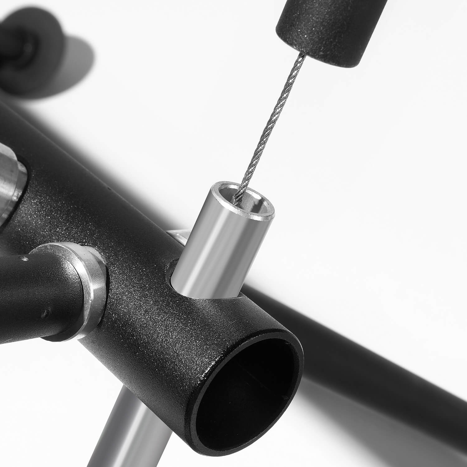 The frame is held together with elastic cords, which makes setup easier than ever without tools required.